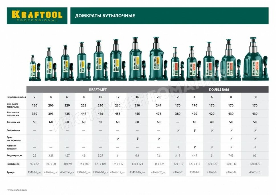 Ниже Вы можете прочитать отзывы на Домкрат гидравлический бутылочный 20т 244-478мм Kraftool 43462-20_z01, ознакомится с подробными характеристиками, посмотреть интересные обзоры и фотографии на Домкрат гидравлический бутылочный 20т 244-478мм Kraftool 43462-20_z01.