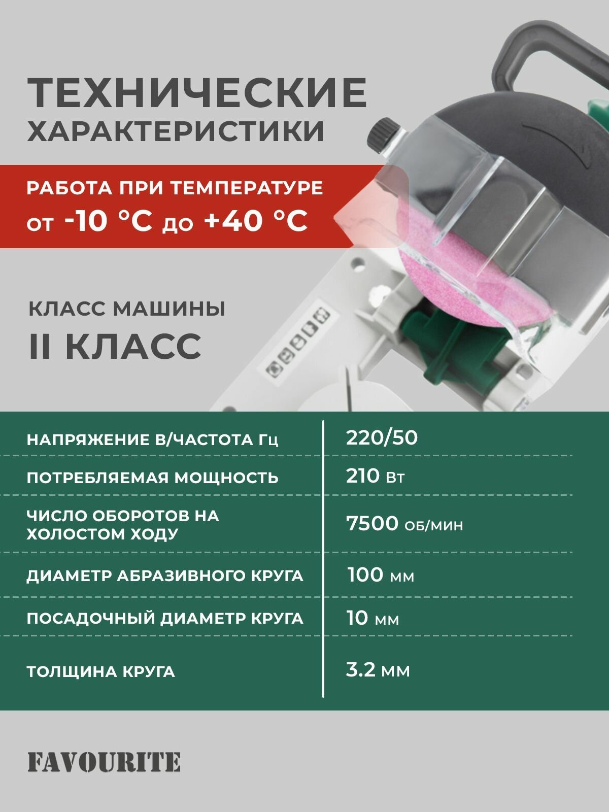 BG 210 Станок для заточки цепей 210Вт, 7500об/мин, 100*10*3.2мм FAVOURITE интересное: