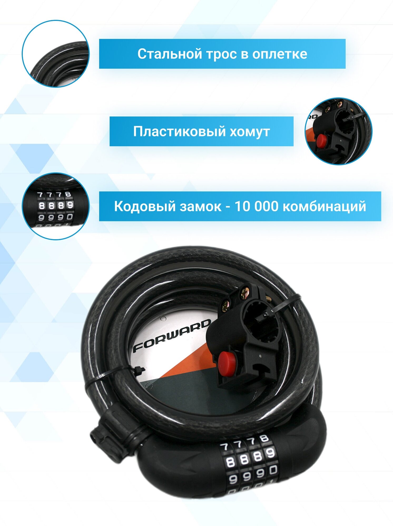 Замок противоугонный Saiguan для велосипедов и самокатов кодовый ZX2222 длина 150 см, трос 15 мм, черный RLKZX2222001