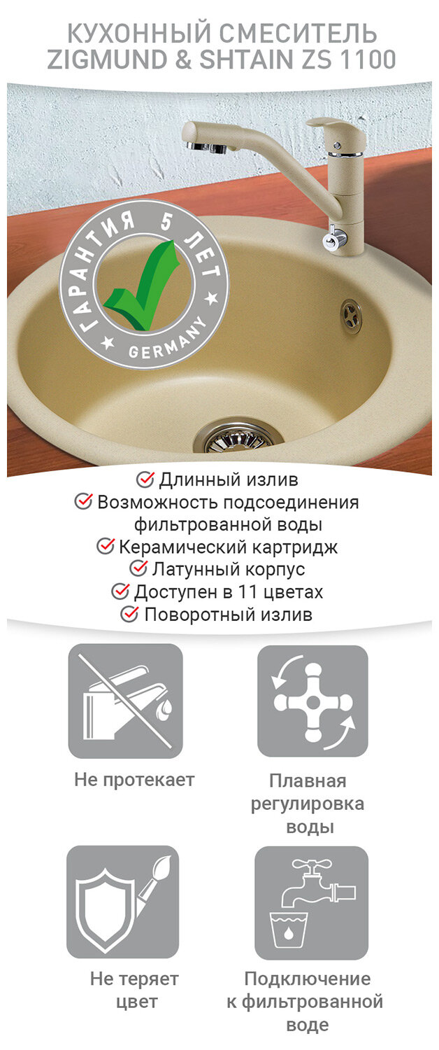 Смеситель для кухни Zigmund & Shtain 1100 ZS Речной песок