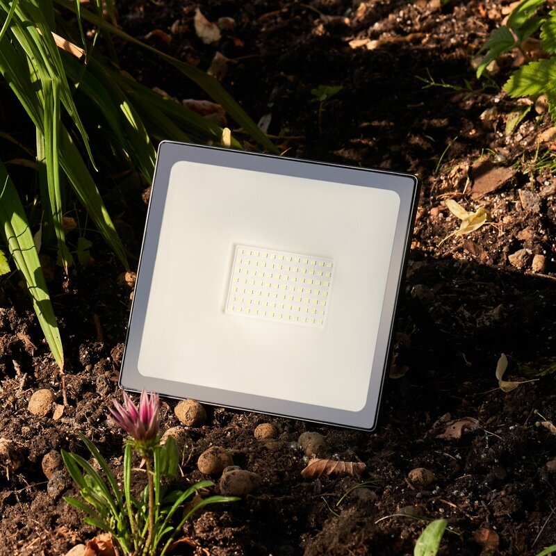 Прожектор светодиодный уличный садовый REXANT 100 Вт с зеленым свечением и площадью освещения до 75 м2