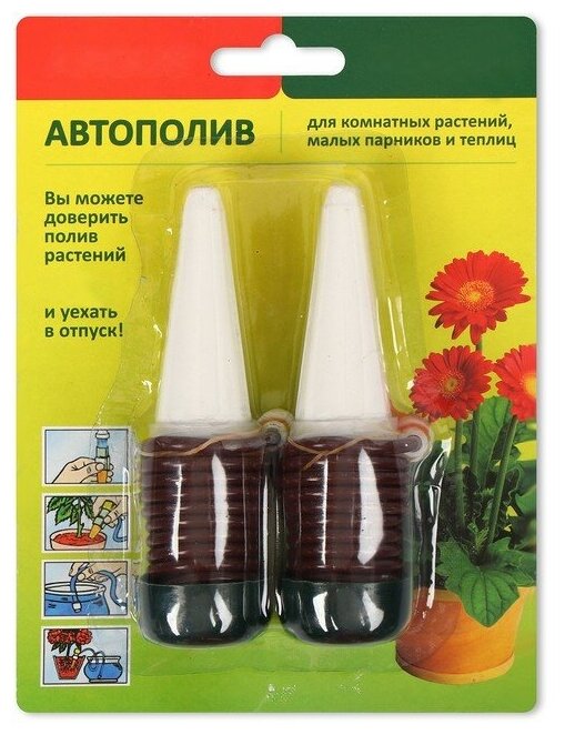 Автополив для комнатных растений, малых парников и теплиц, шланг 1 м, пластиковый, высота 14 см, 2 шт.