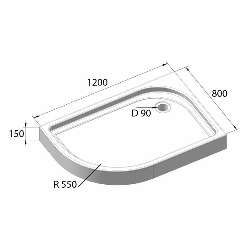 Поддон для душа BelBagno Tray 120х80 R R550 TRAY-BB-RH-120/80-550-15-W-R