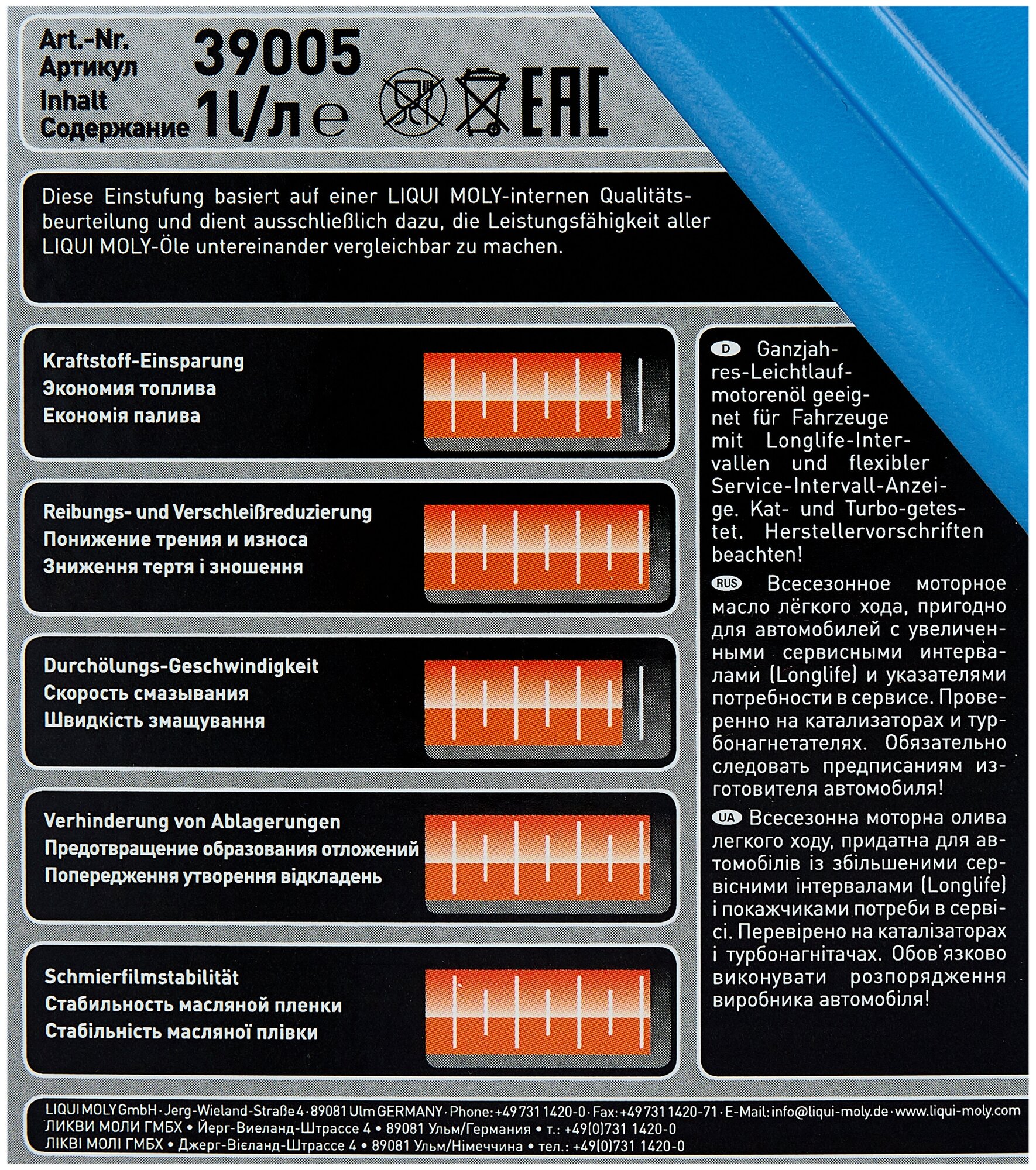 СохранитьLiqui moly Lm 39005 Leichtlauf High Tech Ll 5w-30 1л Син. Мотор. Масло интересное: