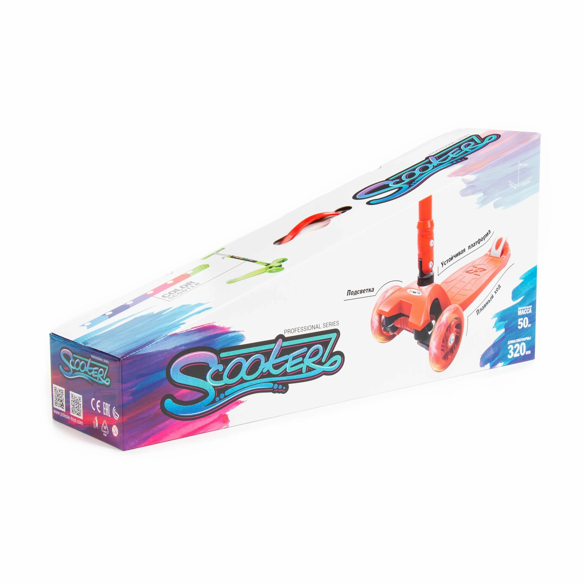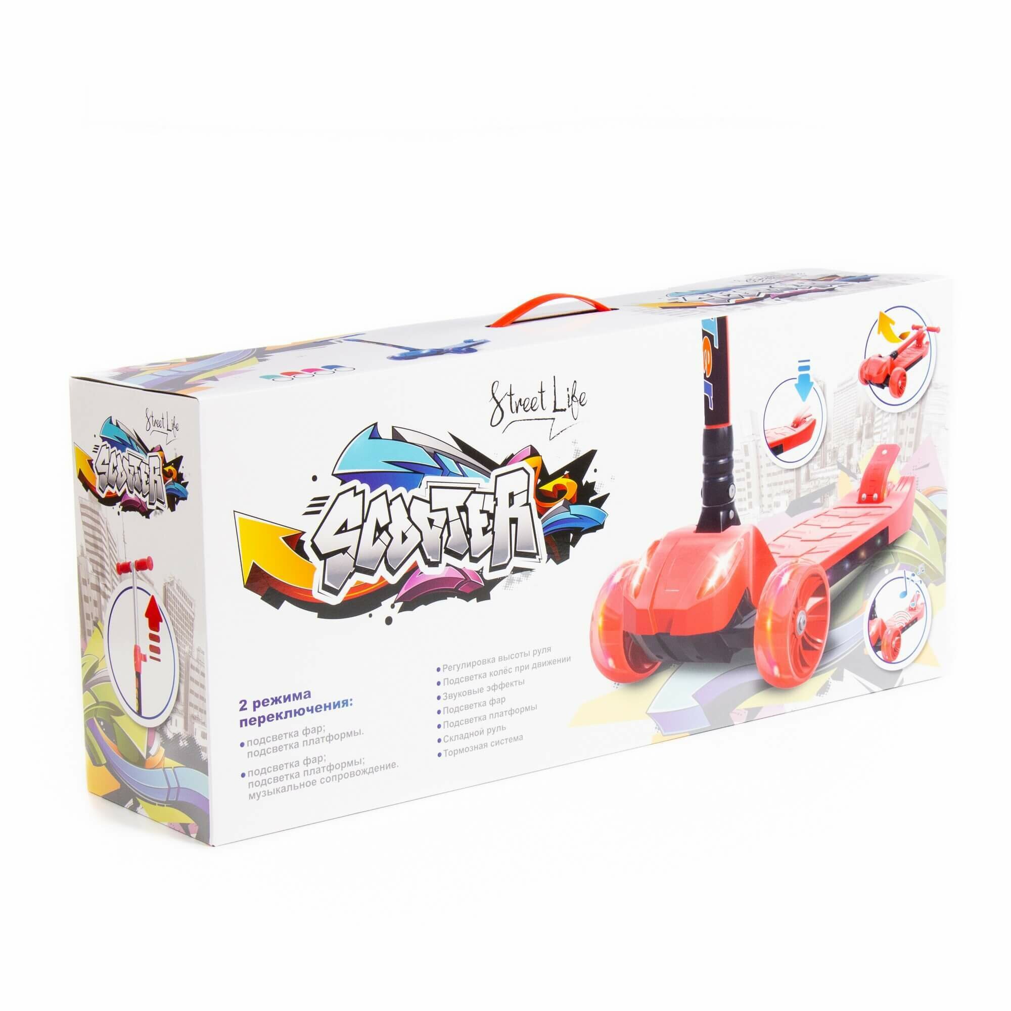 Детский самокат красный со складной ручкой в коробке