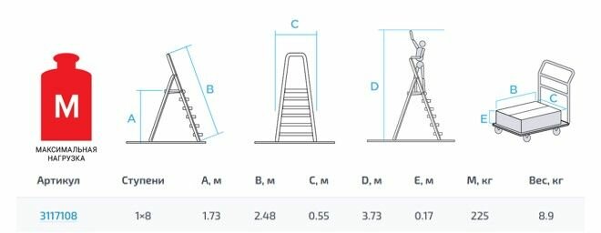 Профессиональная стремянка Новая Высота NV3117, 1x8 ступеней 130 мм 3117108