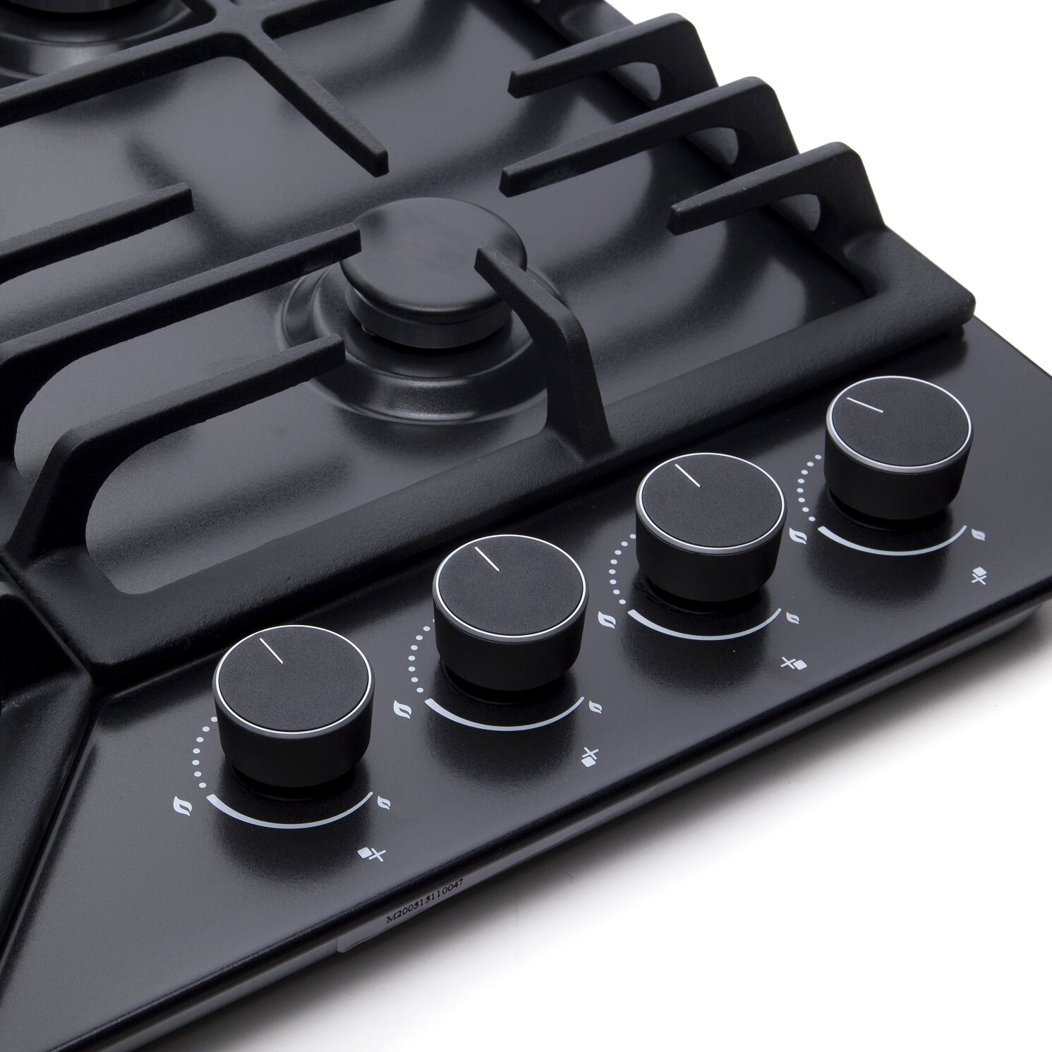 Варочная панель газовая встраиваемая Konigin / Конигин Blaze 604 BМW эмалированная сталь черный 600x510x50мм 4 конфорки 2 решетки / газконтроль / электроподжиг / газовая плита