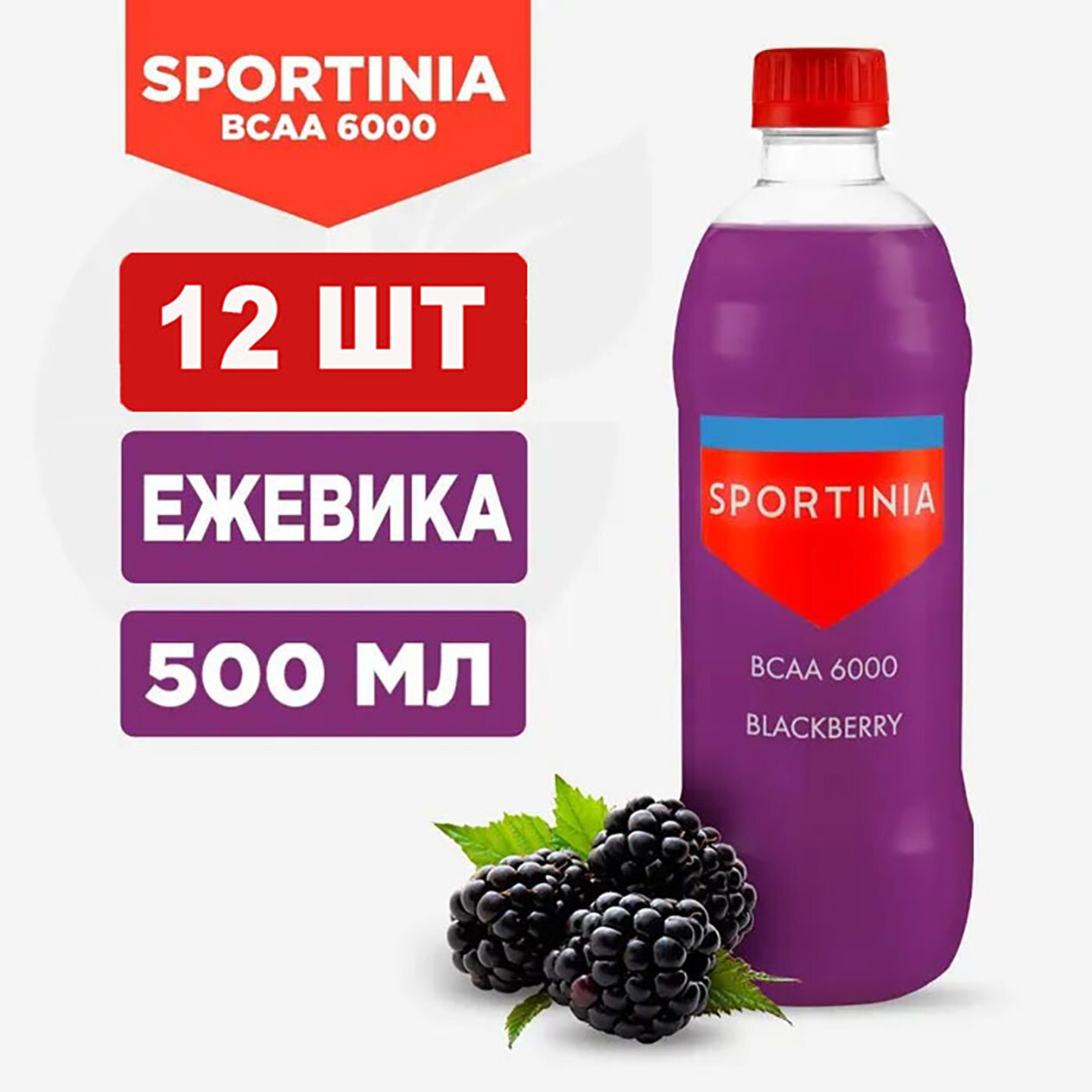 Спортивный напиток, обогащенный аминокислотами ВСАА, Sportinia BCAA 6000 со вкусом Ежевики 12 бутылок по 0,5 л.