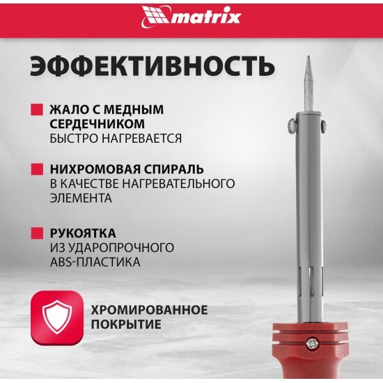Паяльник MATRIX 913033, пластик ABS с пониженной теплопроводностью, медный наконечник с долговечным покрытием