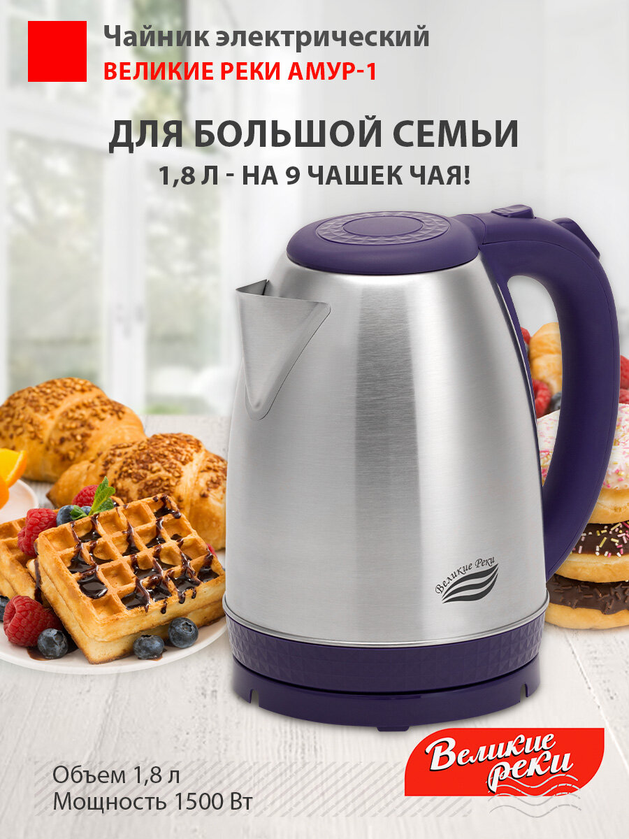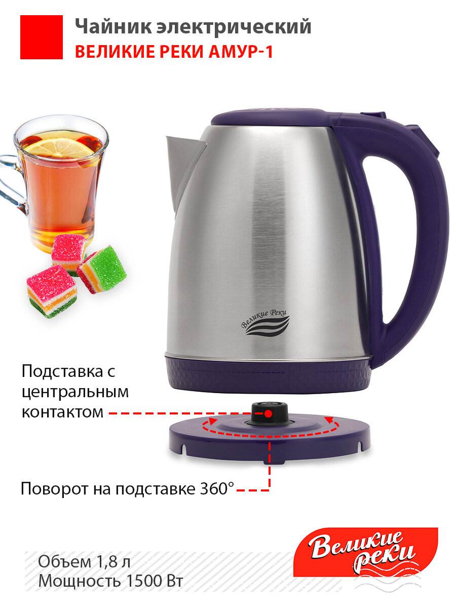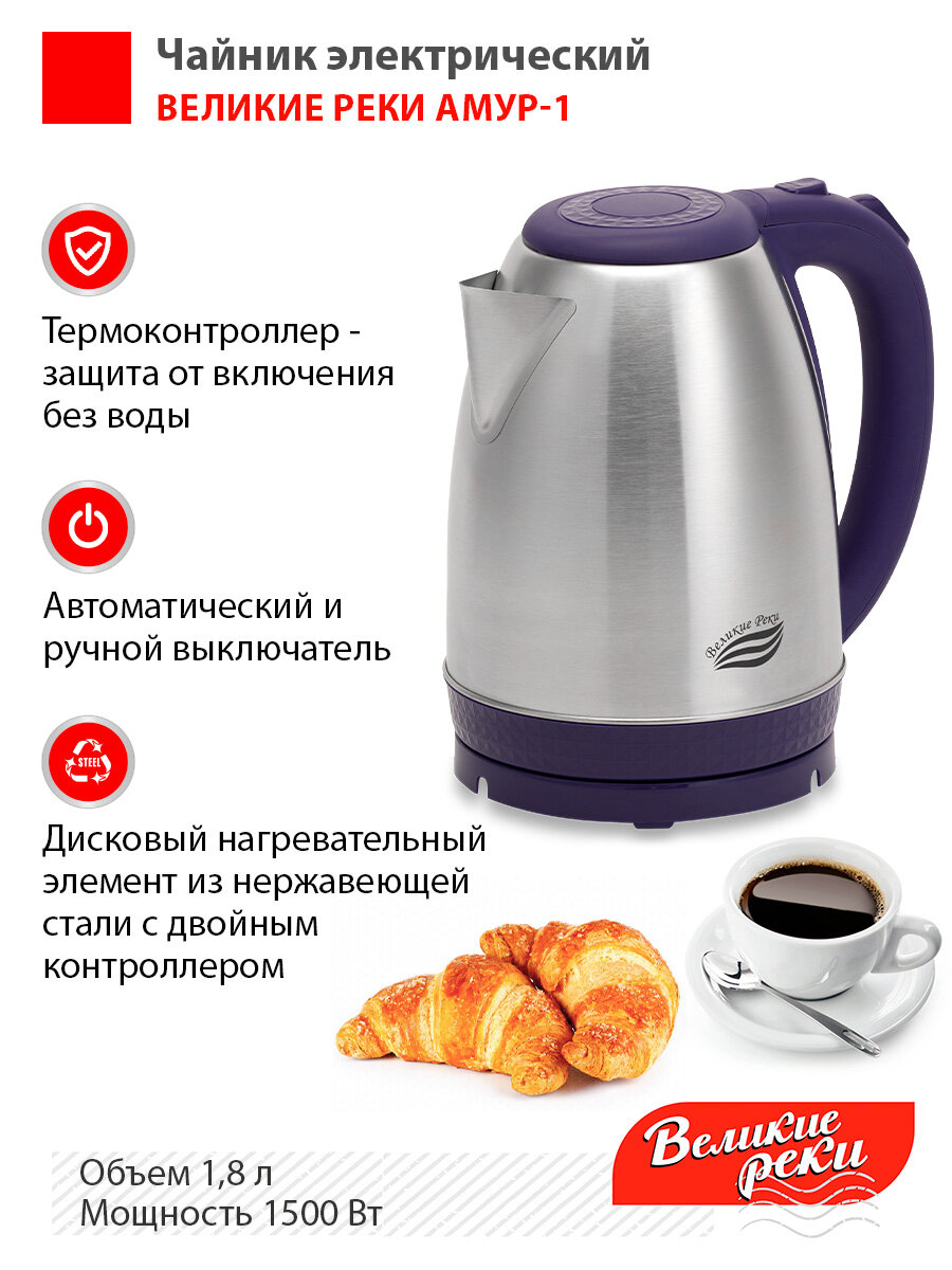 Чайник электрический Великие реки Амур-1 фиолетовый, 1,8л, нержавейка Амур-1 фиолетовый .