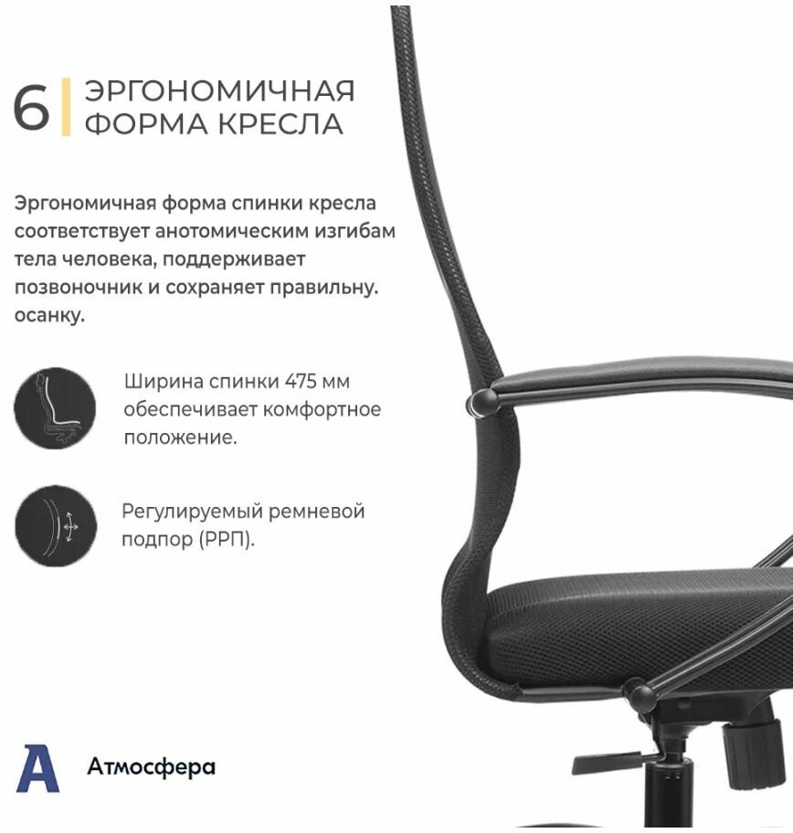 Кресло руководителя Метта SU-BK-8 PL, ткань-сетка черная №20, спинка-сетка, топ-ган (101/001)