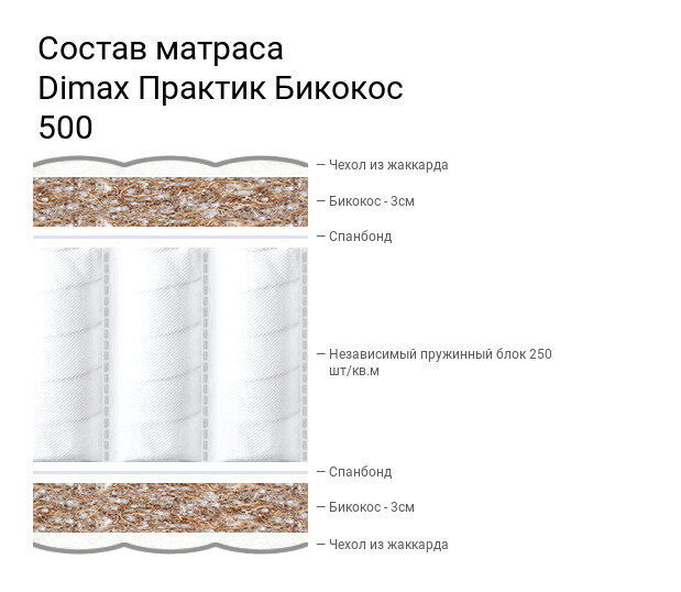 Матрас Dimax Практик Бикокос 500 160х200, стандартный