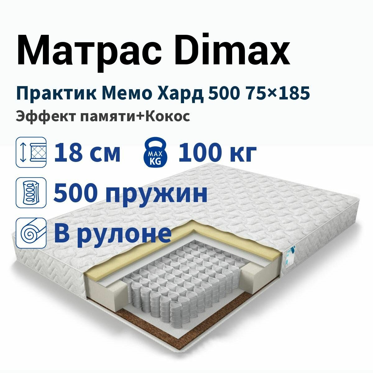 Купить Матрас Dimax Практик Мемо Хард 500 75х185