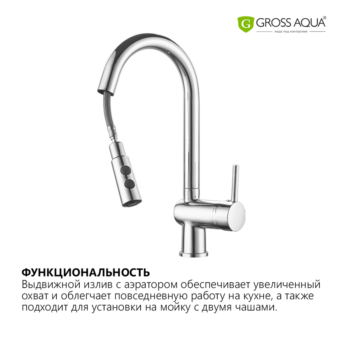 Смеситель для кухни (мойки)Gross Aqua с высоким, вытяжным изливом Extra, хром.