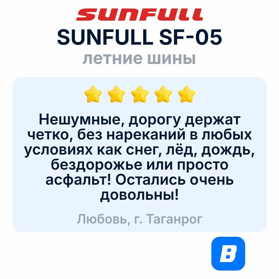Ниже Вы можете прочитать отзывы на Шины Sunfull SF-05 165/R13 94/92R, ознакомится с подробными характеристиками, посмотреть интересные обзоры и фотографии на Шины Sunfull SF-05 165/R13 94/92R.