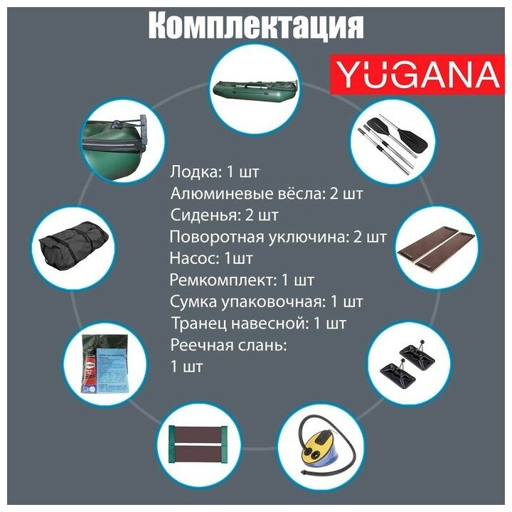 Лодка "YUGANA" R-260 PC ТР реечная слань+транец, цвет олива 2094163