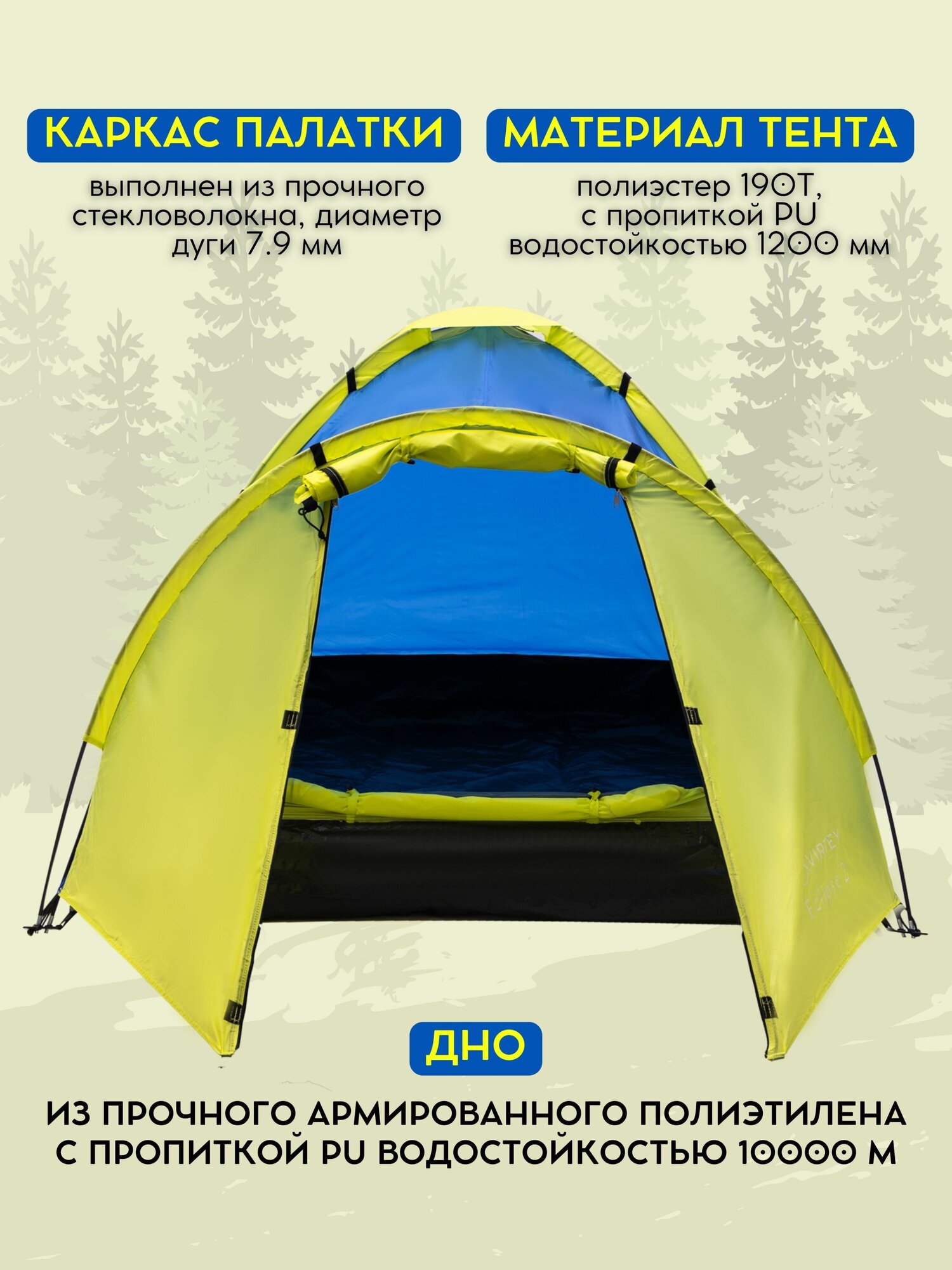 Купить Палатка туристическая 2х местная однослойная с тамбуром Virtey Eclipse-2 (290х150х105 см)