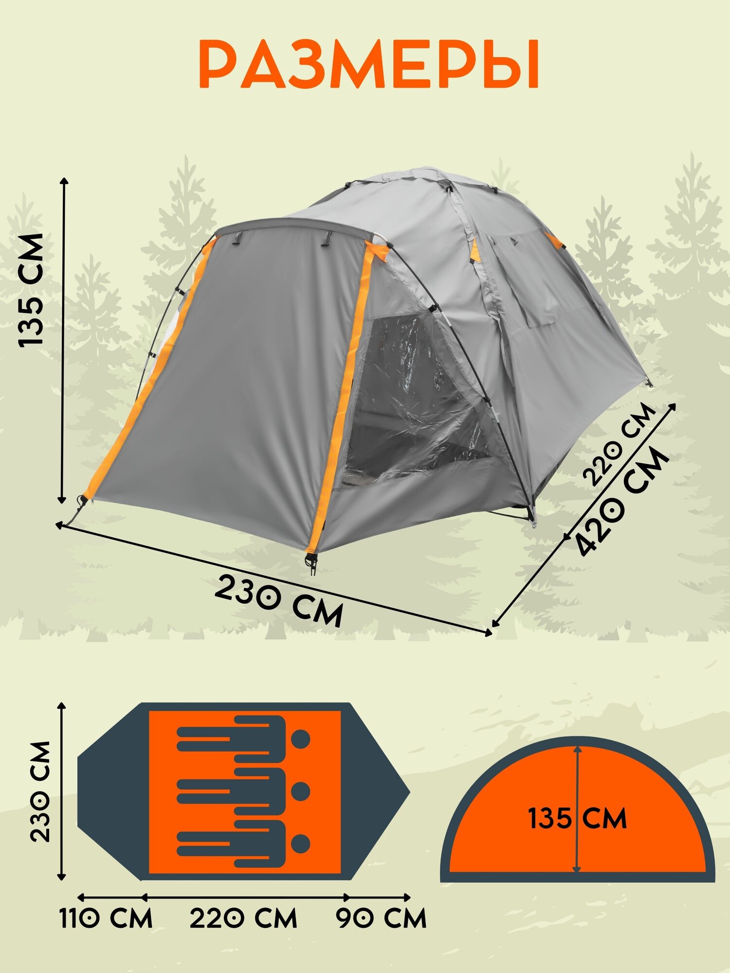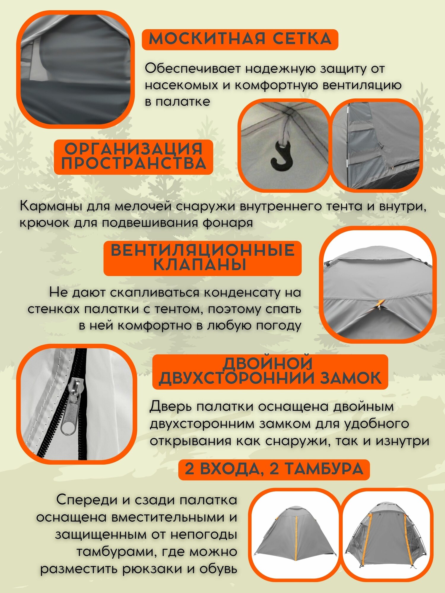 Палатка туристическая 3х местная двухслойная с 2 тамбурами Virtey Aerotech-3 (420х230х135 см) интересное: