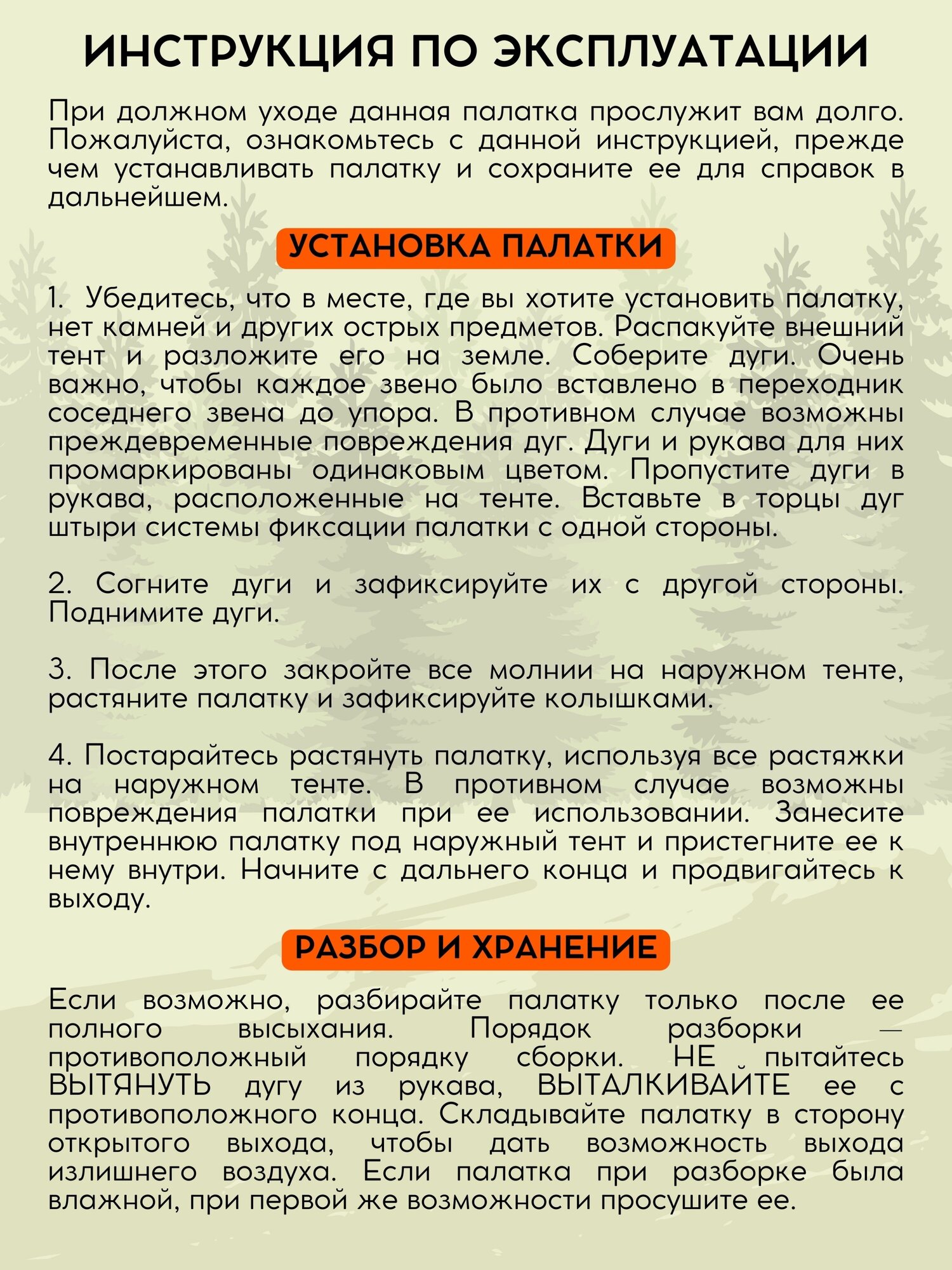 | Плюсы: | Крутая палатка , с двумя выходами и окнами, что очень удобно в плане проветривания , с 4 сторон , в ней никогда не жарко и в целом очень красивая |