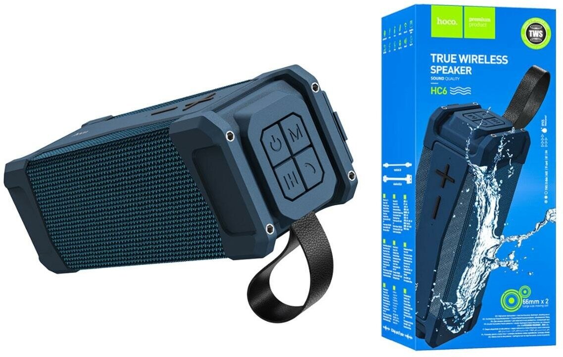 Беспроводная стерео колонка HOCO HC6 4000mAh, TWS, BT 5.0, U-disk, TF, FM, Waterproof IPX5, Темно-Синий