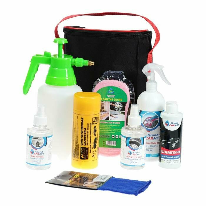 Подарочный набор для ухода и мойки авто Grand Caratt, в сумке, 8 предметов интересное: