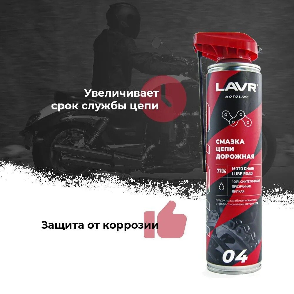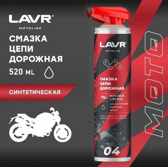 Смазка Цепей Мототехники Lavr Ln7704 Дорожная 520мл Аэрозоль LAVR арт. Ln7704