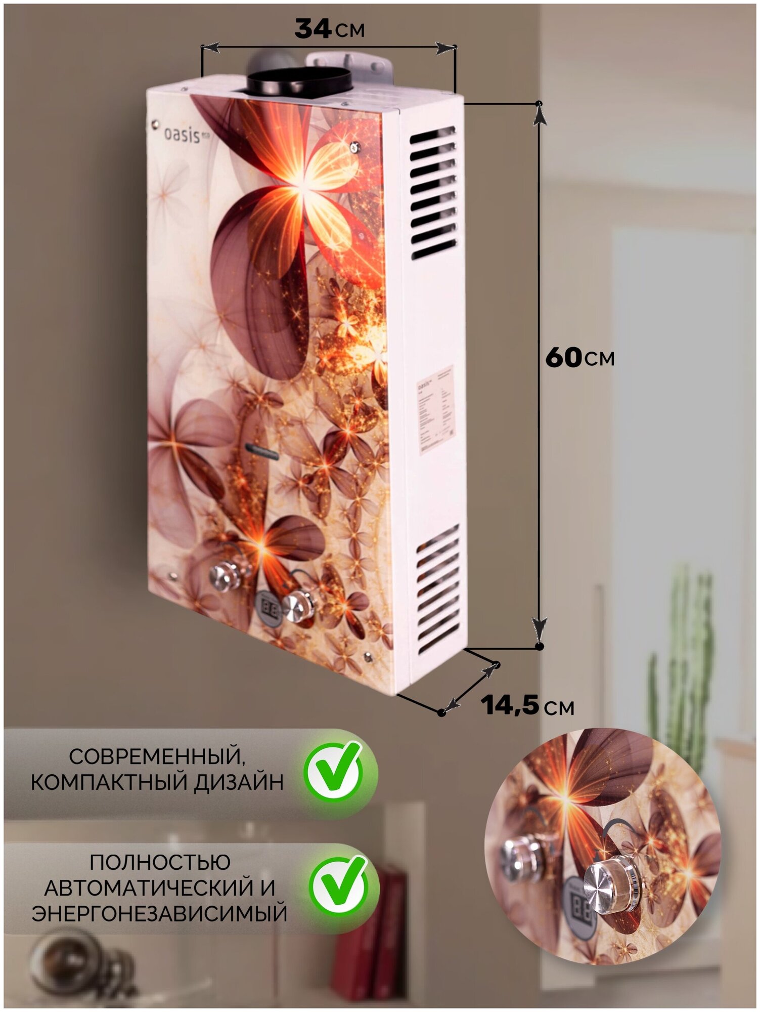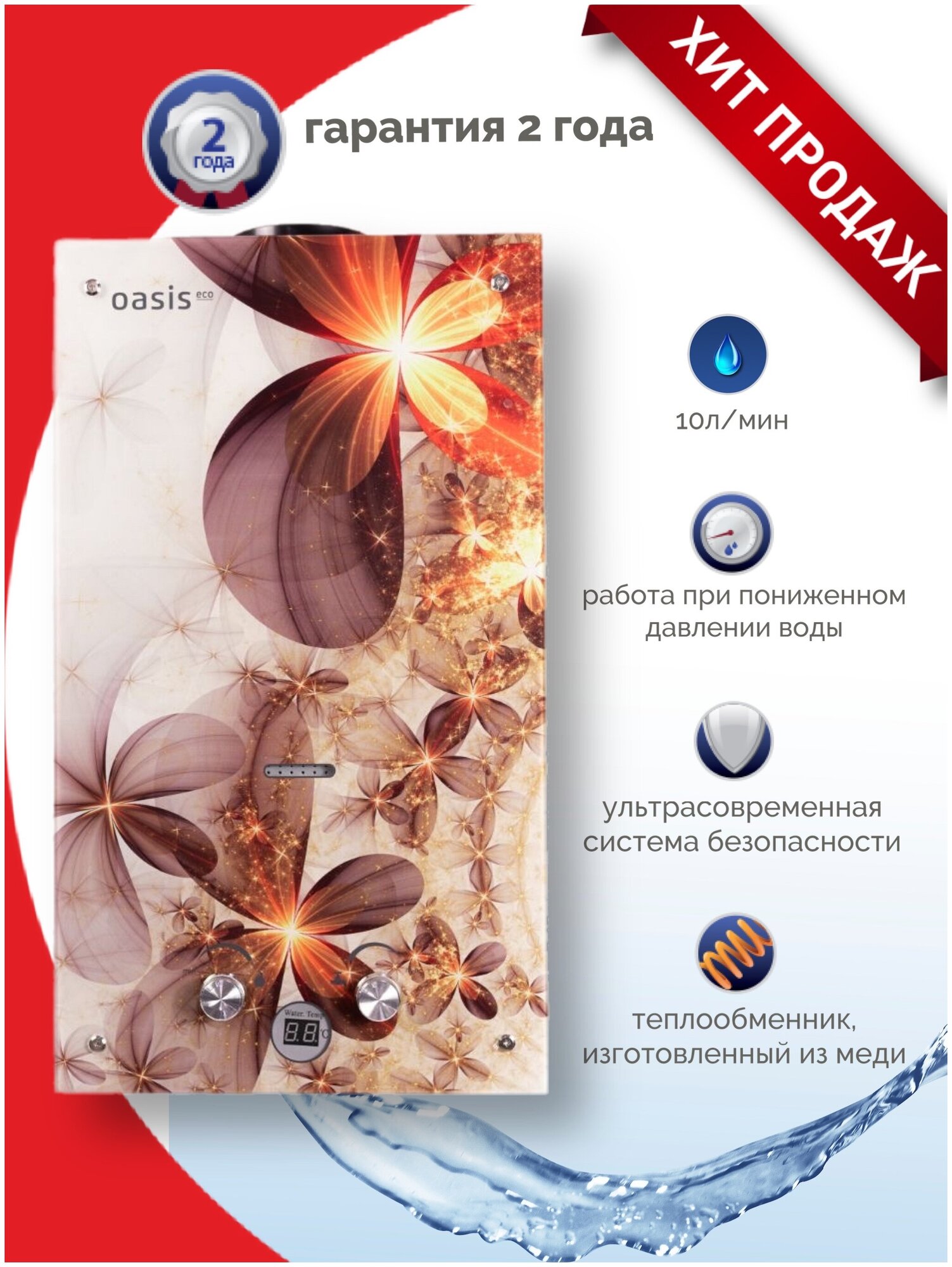 Купить Газовая колонка Oasis Eco Glass B-20 Каменный цветок, 20 кВт, 10 л в м. Энергонезависимая Работа при пониженном давлении воды Электронное зажигание Сетчатый фильтр КПД 90% LCD дисплей