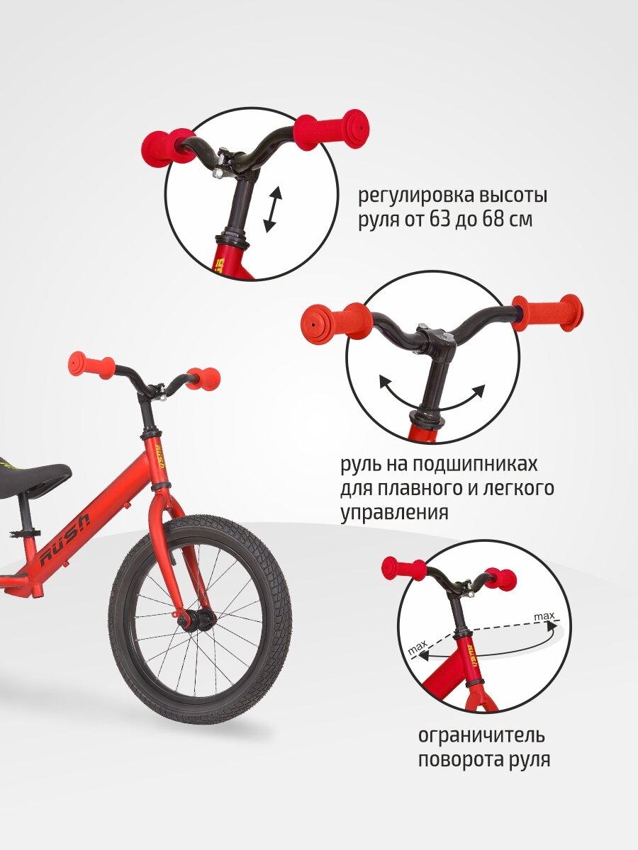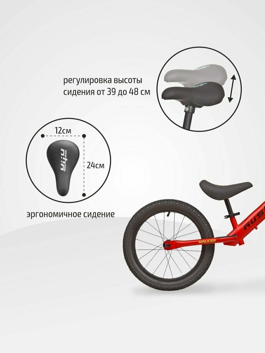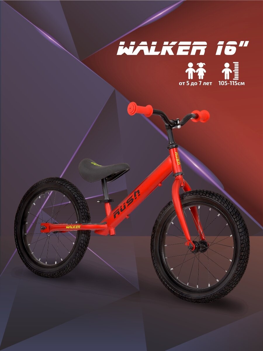 Беговел 18" RUSH HOUR WALKER рост 115-130 см красный. Детский транспорт для детей 6, 7, 8 и 9 лет велобег самокат без педалей толокар легкий мотоцикл