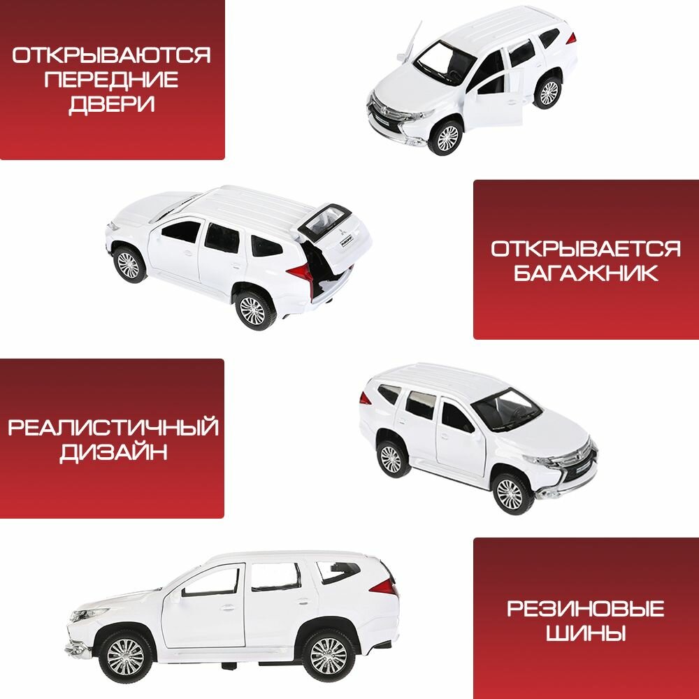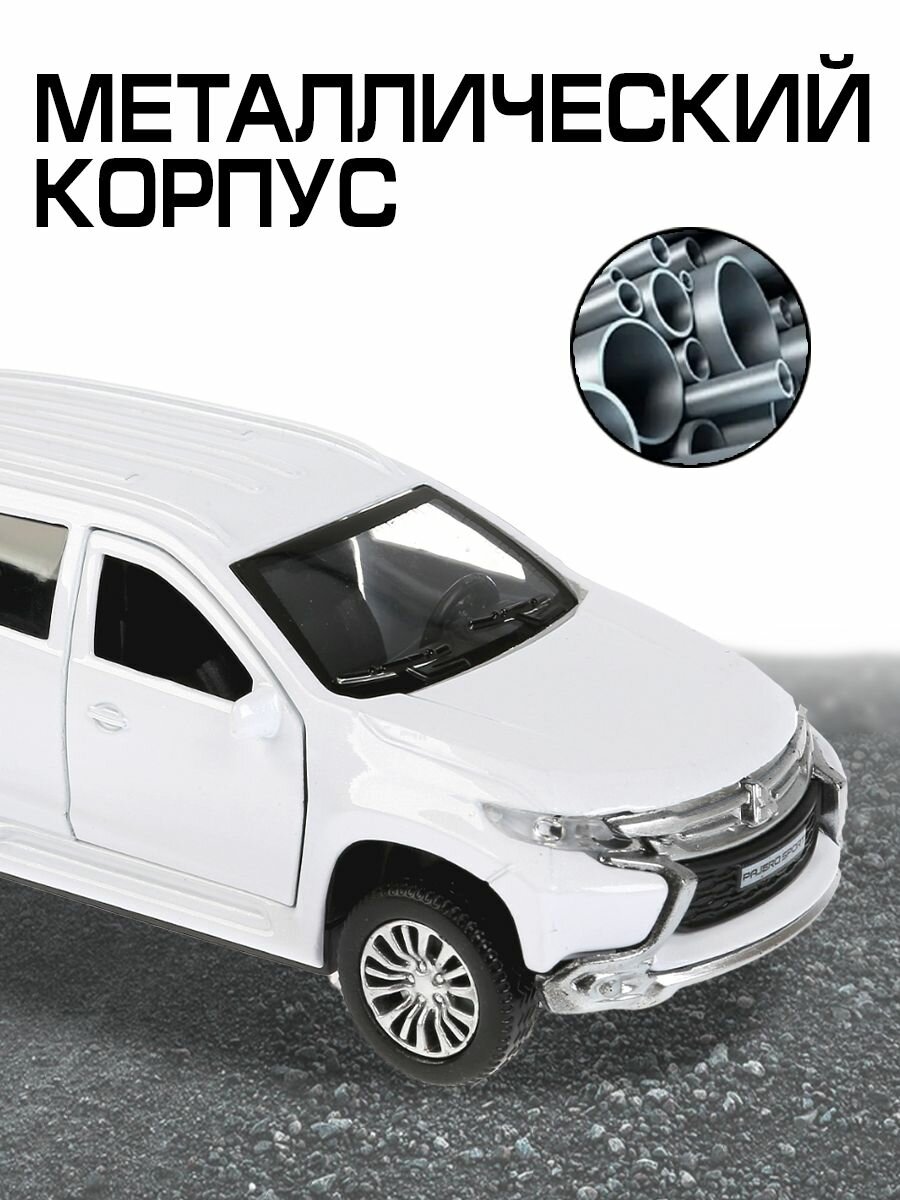Машинка детская Mitsubishi Pajero Sport 12 см, Технопарк, белая, открываются двери и багажник, металлический корпус