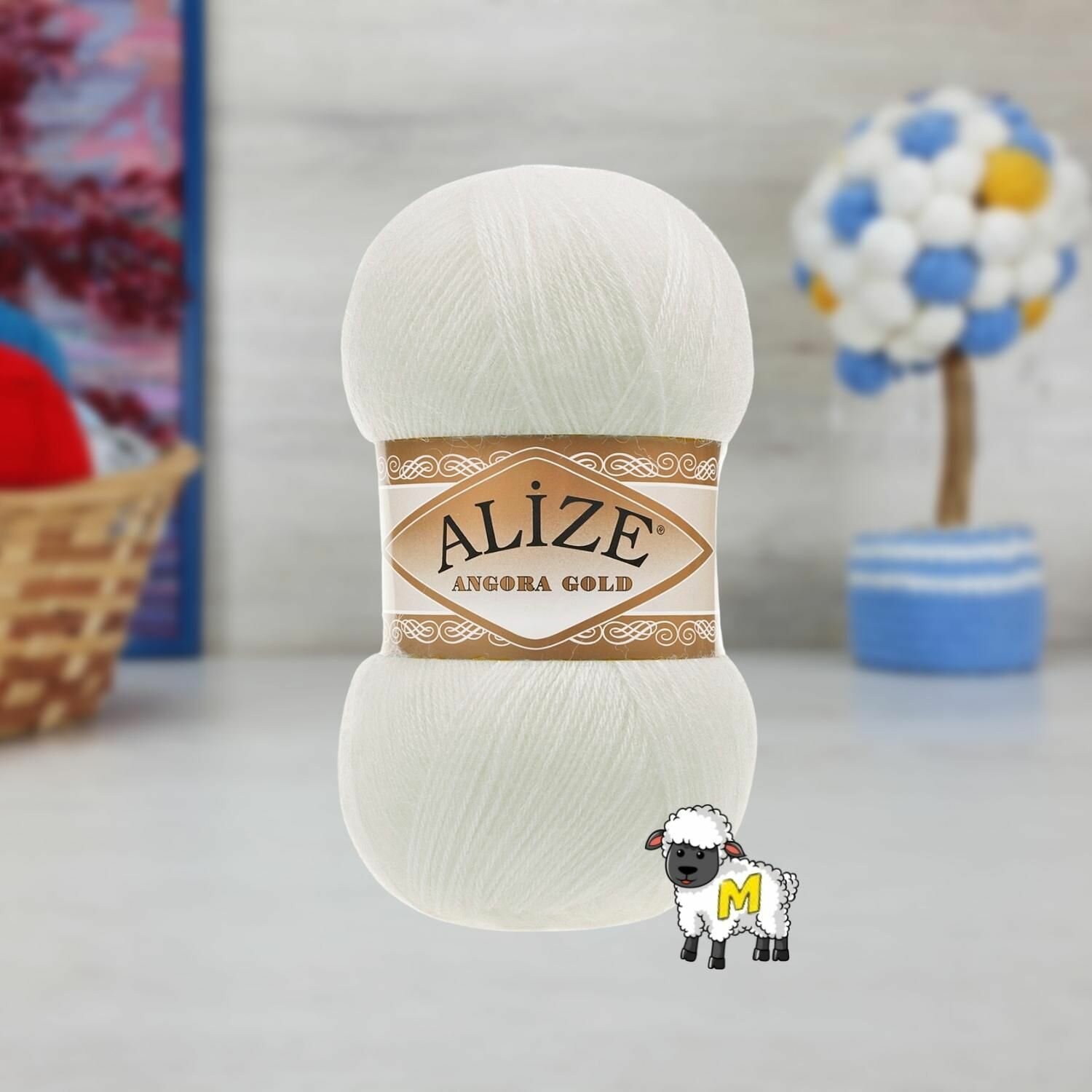 Пряжа для вязания Alize Angora Gold, цвет 599 слоновая кость, 100г, 550м, 5шт/упак