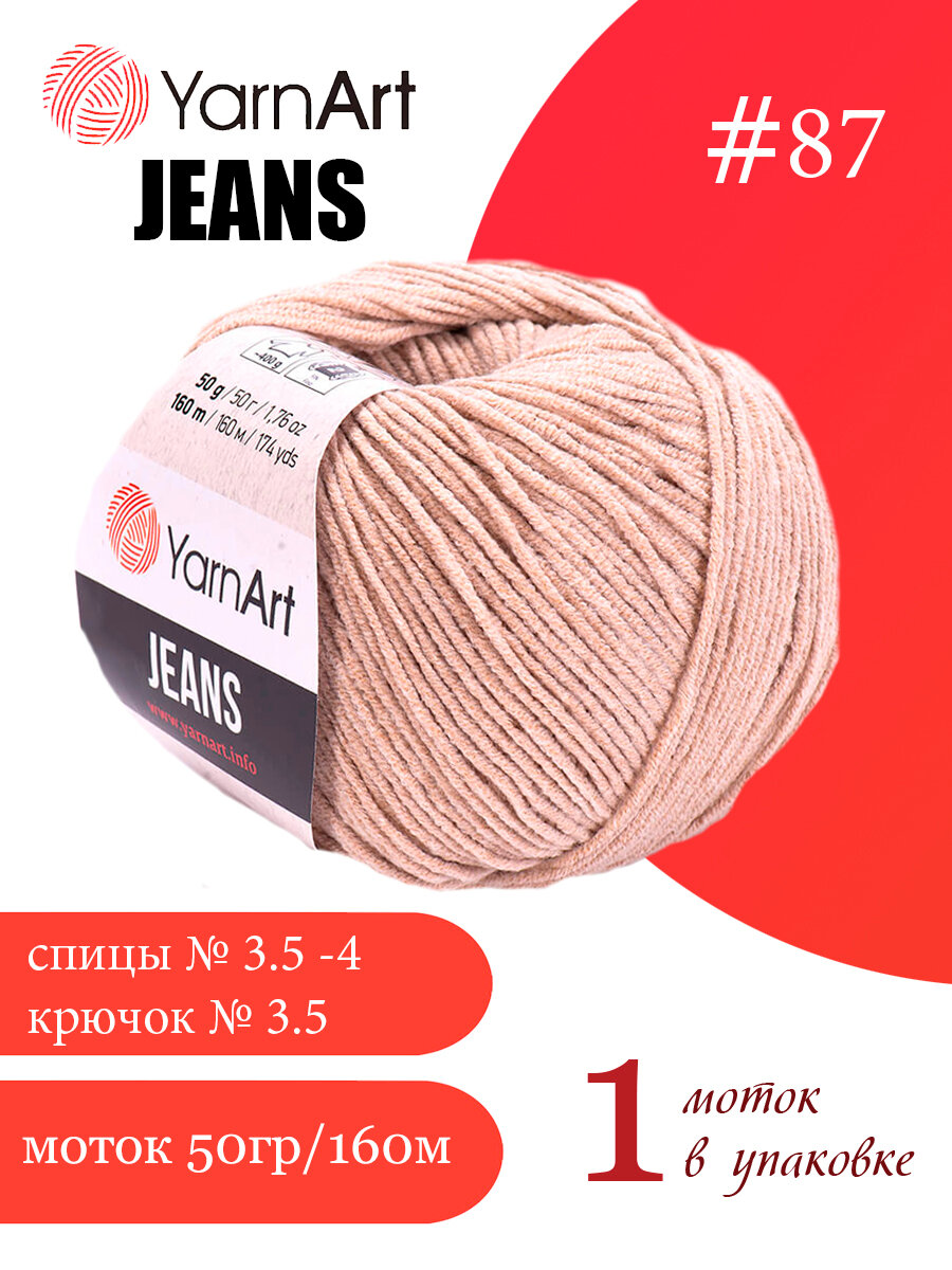 Купить Пряжа YarnArt Jeans Ярнарт джинс Бежевый (87) 1 моток 50 г/160 м (45% акрил 55 хлопок)