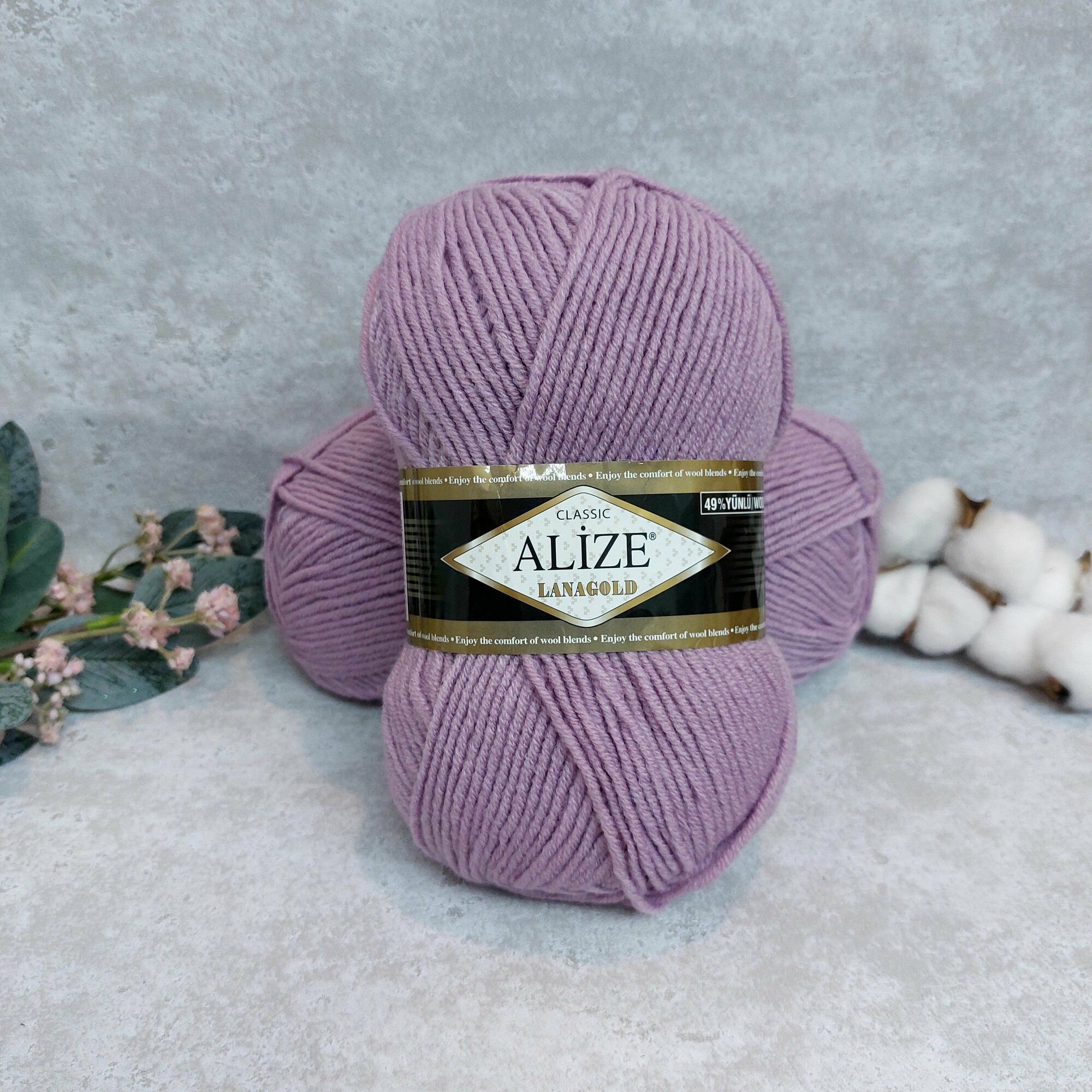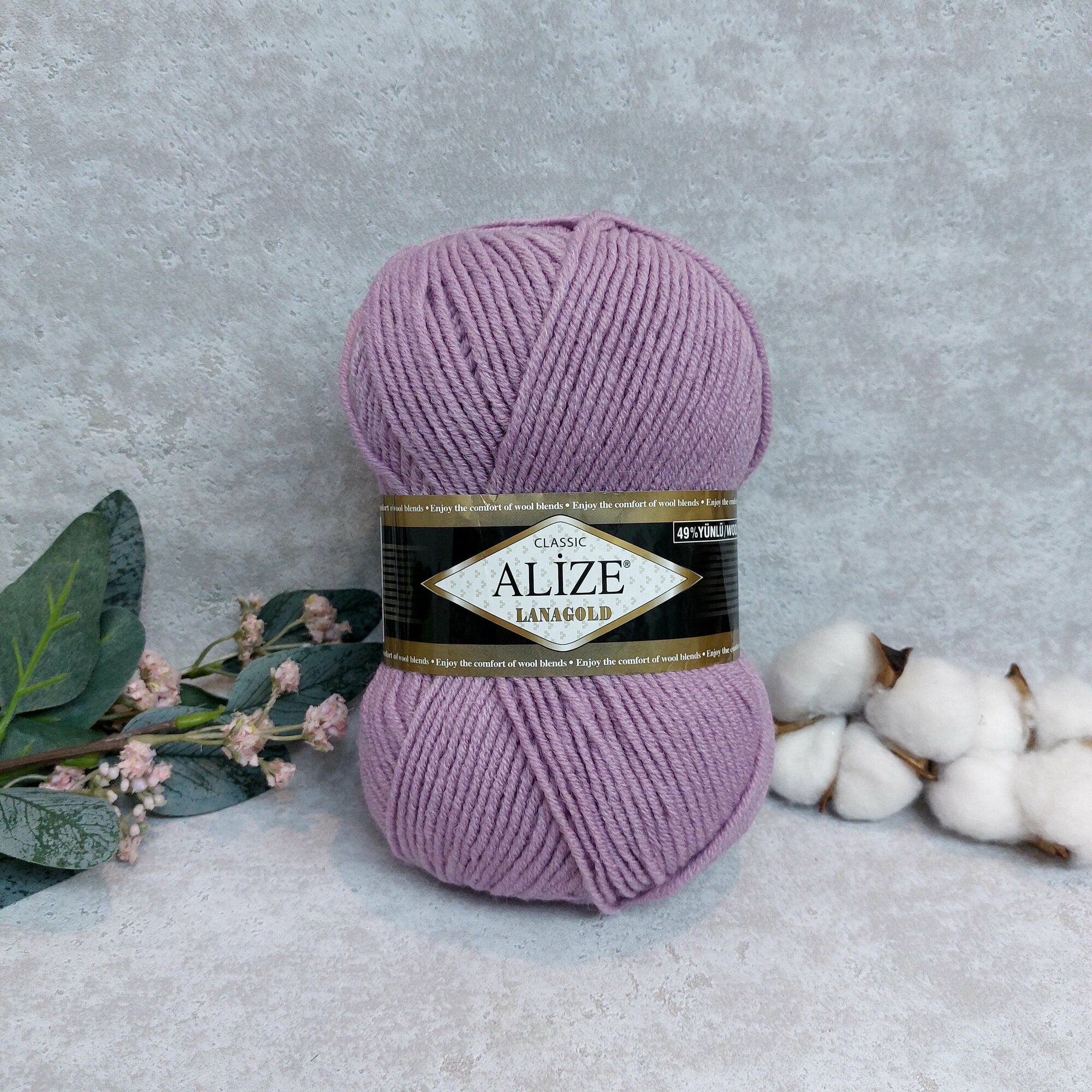 Пряжа Alize Lanagold (Ланаголд) цвет 505 пепельно-сиреневый 49% шерсть, 51% акрил 100г 240м 5шт