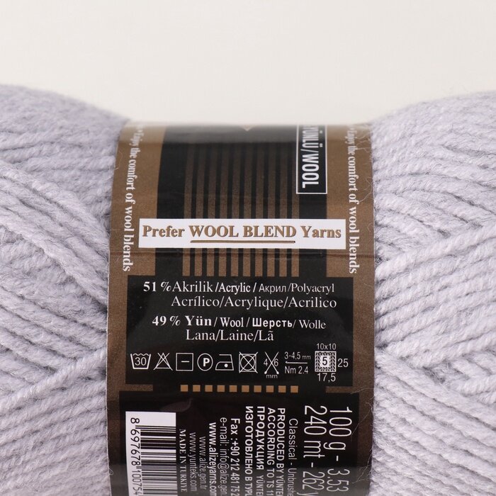 Пряжа ALIZE "Lanagold", 51% акрил, 49% шерсть, 240 м*100 г, 200 светло-серая