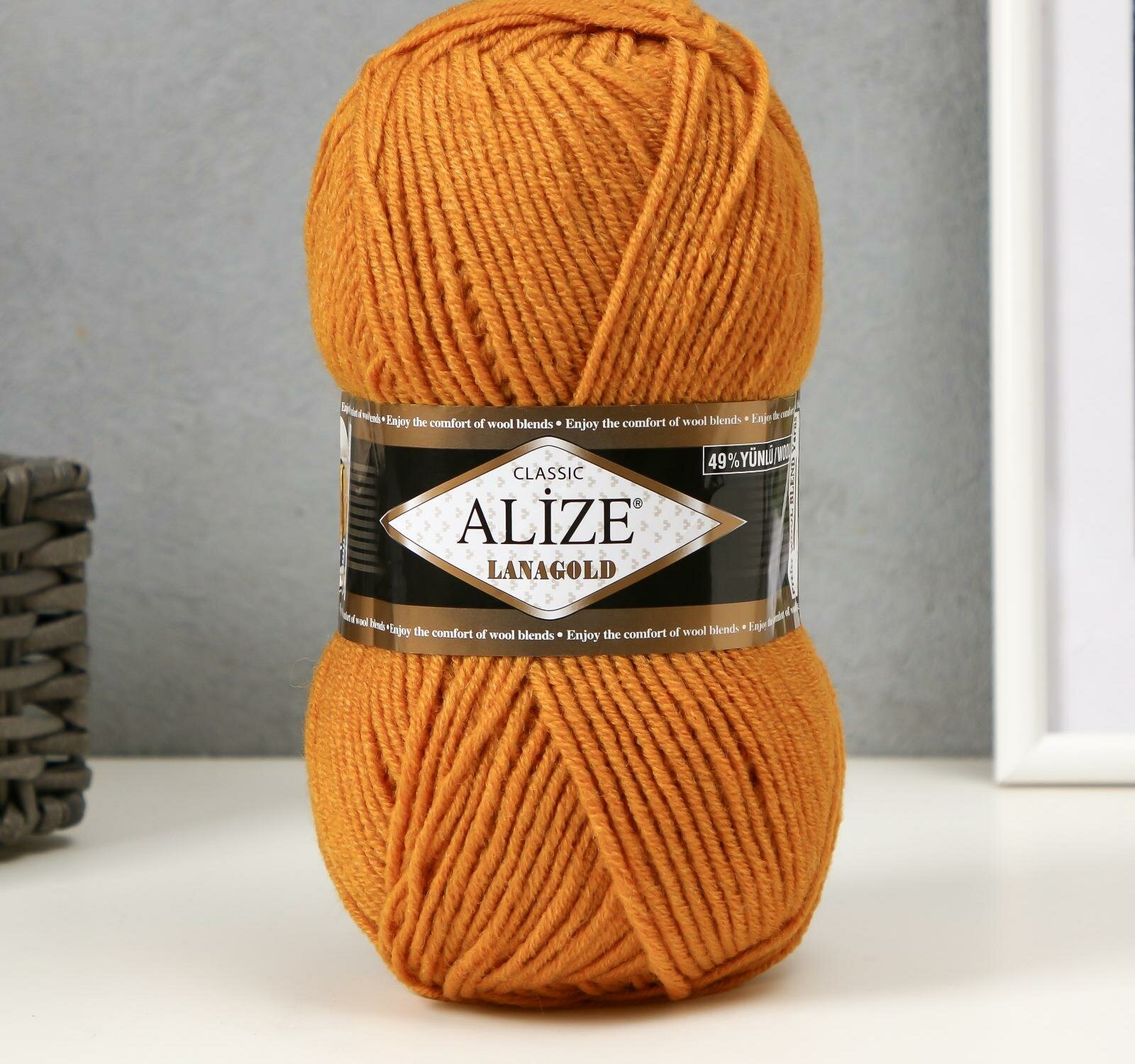 Пряжа Alize Lanagold (Ланаголд) медовый 680, 49% шерсть, 51% акрил 100г 240м 5шт