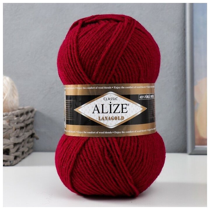 Купить Пряжа Лана Голд Ализе 390 вишня 49% шерсть, 51% акрил 100г 240м 1 шт