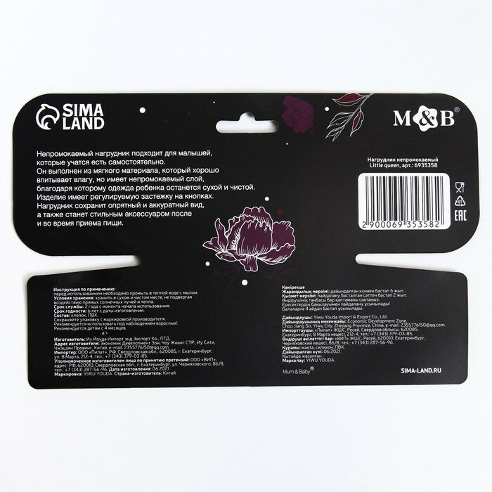 Mum&Baby Нагрудник для кормления/слюнявчик непромакаемый на непромокаемой основе на кнопках Little queen