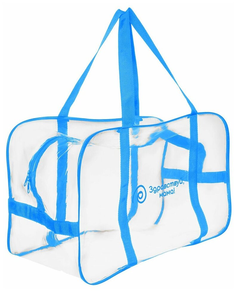 СохранитьСумка в роддом прозрачная готовая для мамы и малыша "здравствуй, мама!", цвет голубая, одна большая сумка интересное: