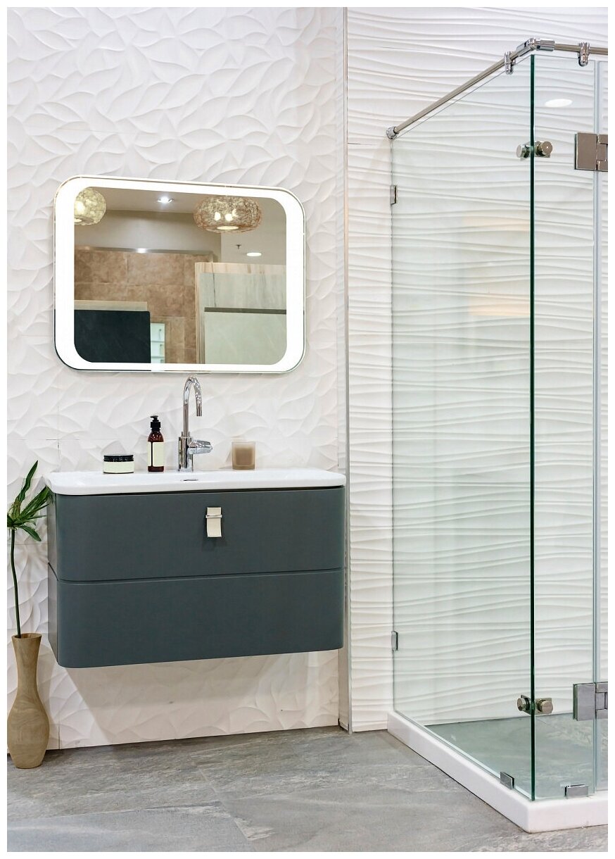 Зеркало настенное для ванной КерамаМане 70*100 см с холодной подсветкой 6000 К с сенсорной кнопкой