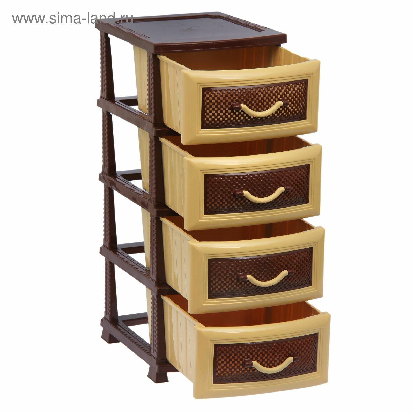 Комод пластиковый Росспласт 4-х секционный, "Дельфин", цвет бежево-коричневый (1593615)