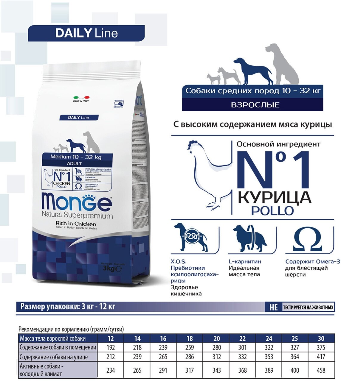 Сухой корм для собак Monge Daily Line, курица 12 кг (для средних пород)
