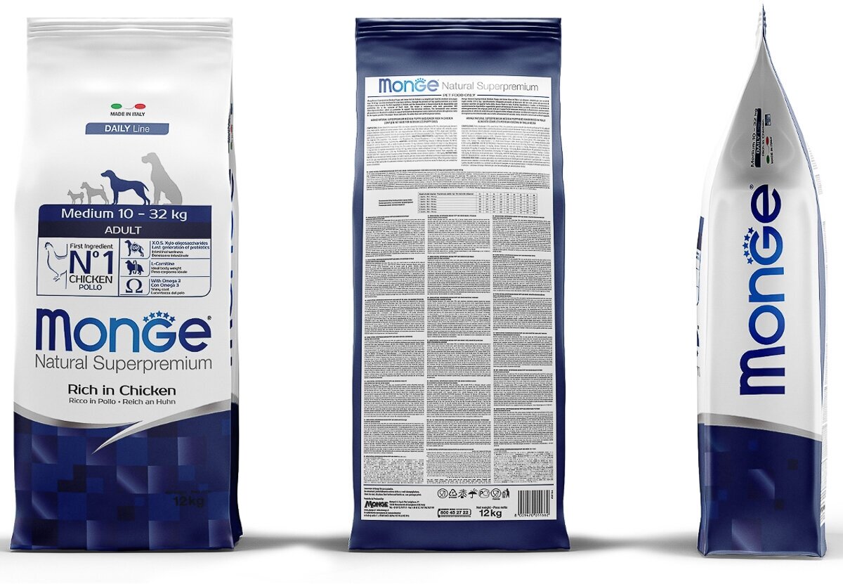 Сухой корм для собак Monge Daily Line Medium, курица 12 кг (для средних и крупных пород)