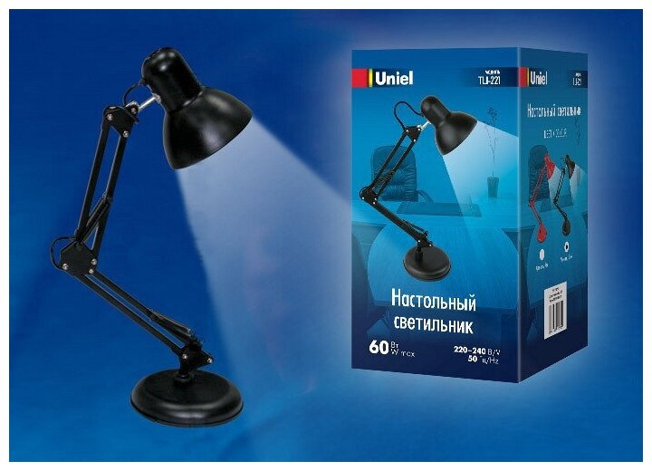 Лампа офисная Uniel TLI-221 Black, E27, 60 Вт, черный