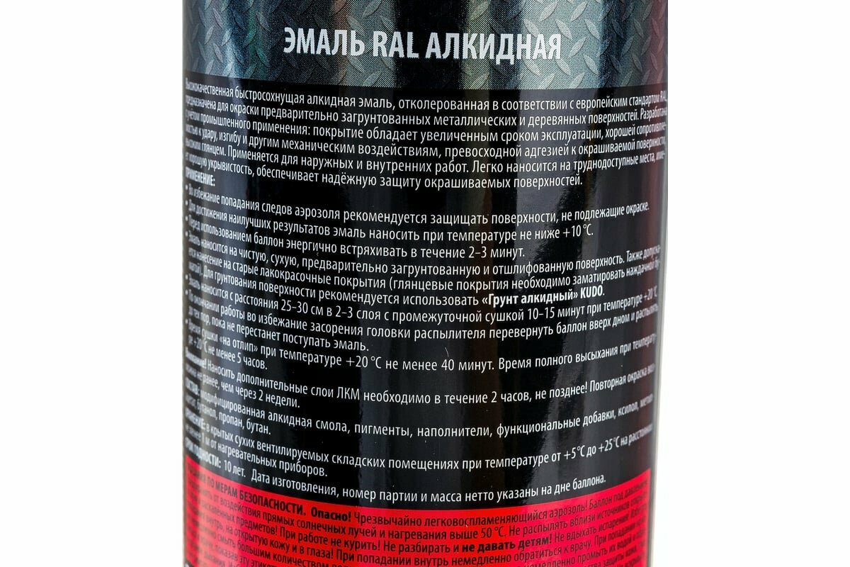 Кудо KU-09005 эмаль аэрозольная RAL9005 реактивный черный (0,52л) / KUDO KU-09005 эмаль аэрозольная алкидная RAL 9005 реактивный черный (0,52л)