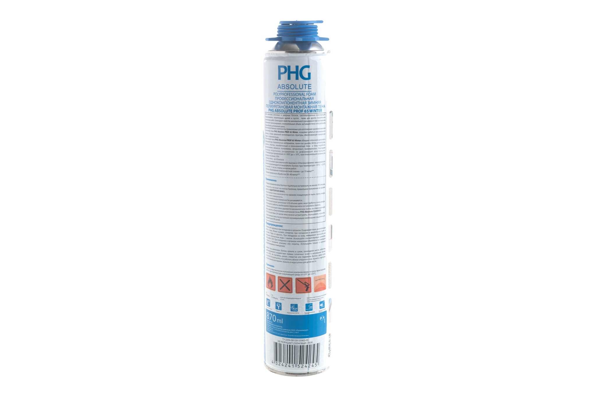 Профессиональная монтажная пена PHG Absolute PROF 65 Winter 870 ml 242415 интересное: