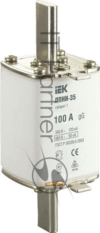 Вставка плавкая ППНИ-35 100А габарит 1, IEK DPP30-100 (1 шт.)