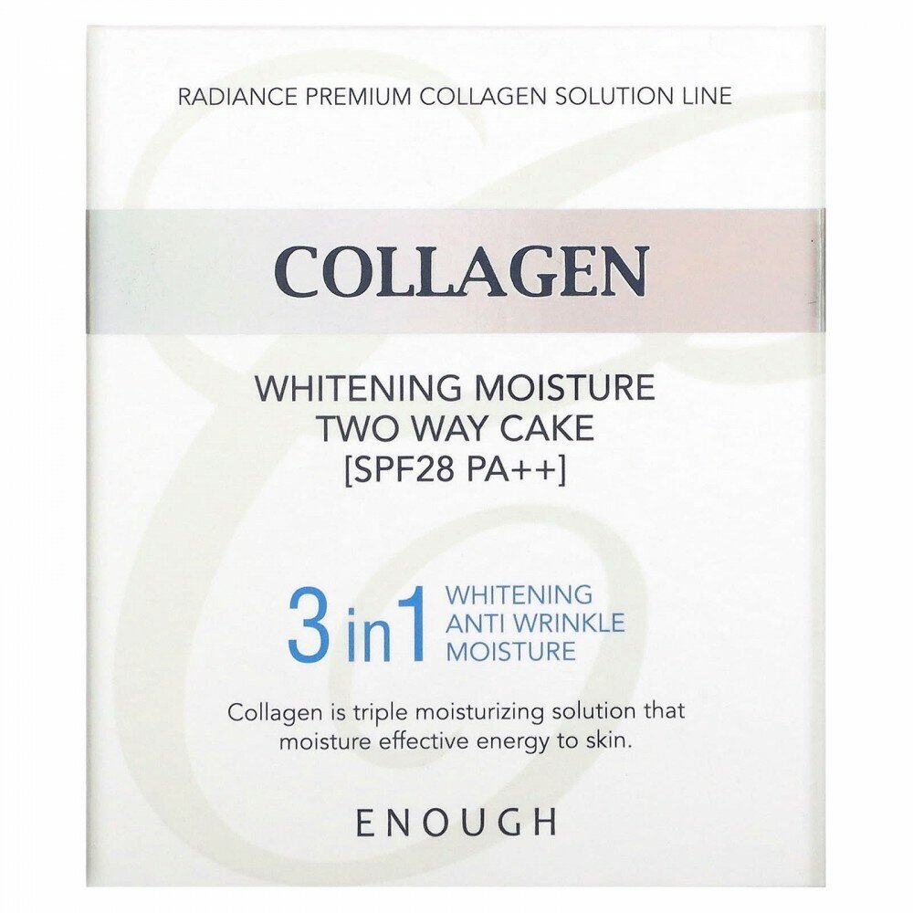 Enough Пудра для светлой кожи со сменным блоком / Collagen Whitening Moisture Two Way Cake SPF30 PA+++, 13 мл*2
