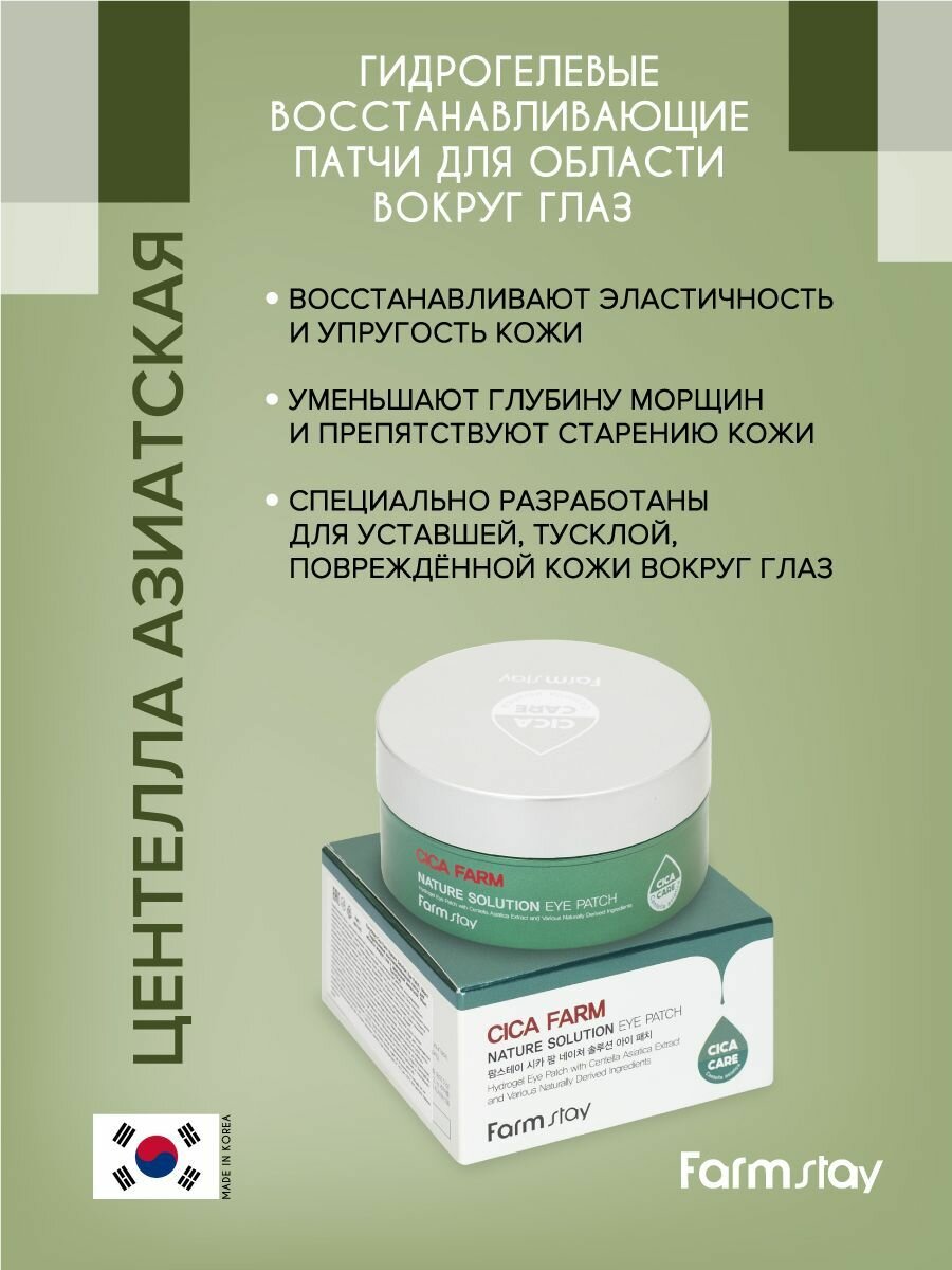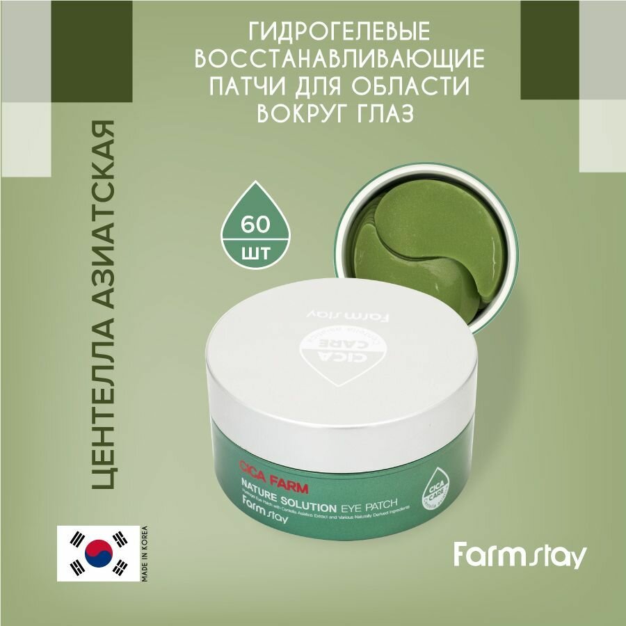 Farm Stay Гидрогелевые восстанавливающие патчи вокруг глаз с центеллой азиатской Cica Farm Nature Solution Eye Patch, 60шт