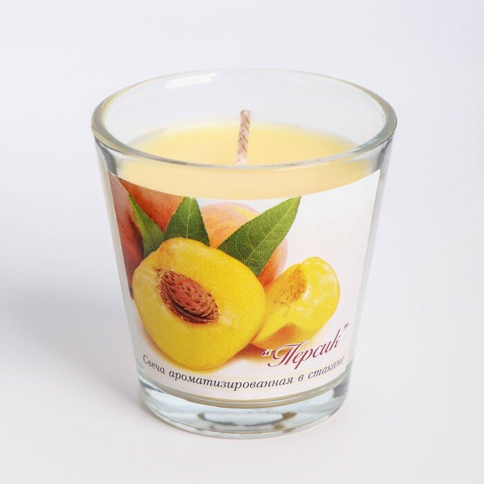 Свеча ароматическая в стакане "Персик", 6,5х6,5 см, 10 ч, 165 г, желтая (1 шт.)
