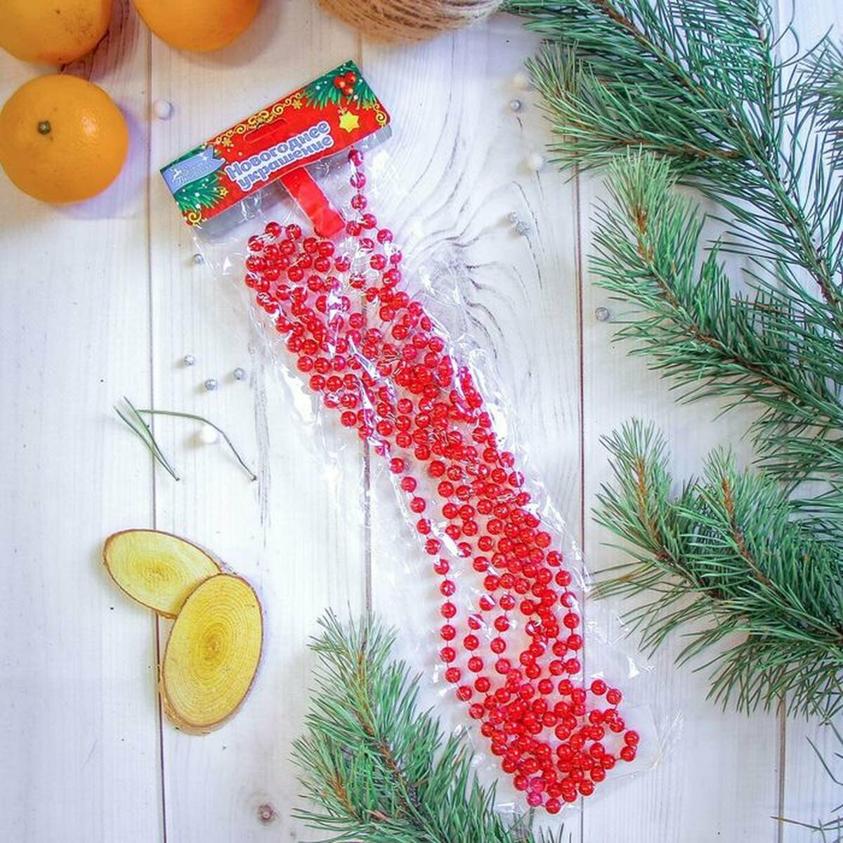Бусы на ёлку 2.7 м "Шарики" d-7 мм, красные, 2 шт.