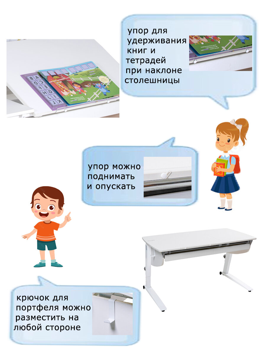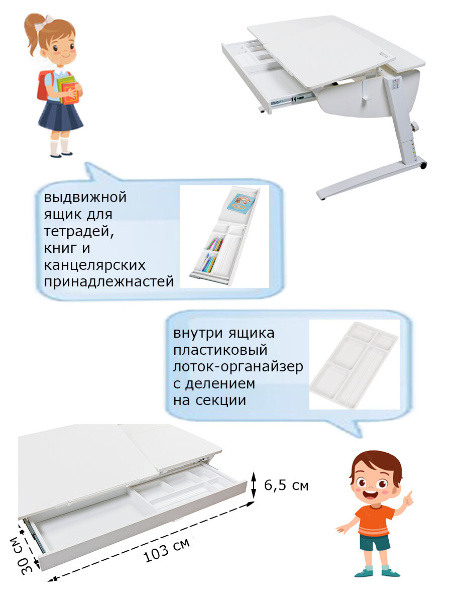 Стол детский Астек-Элара Премиум с ящиком 120x70 см белый/белый/серый
